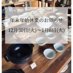 12月30日(火)〜1月6日(火) まで休業させていただきます。よろしくお願いします。